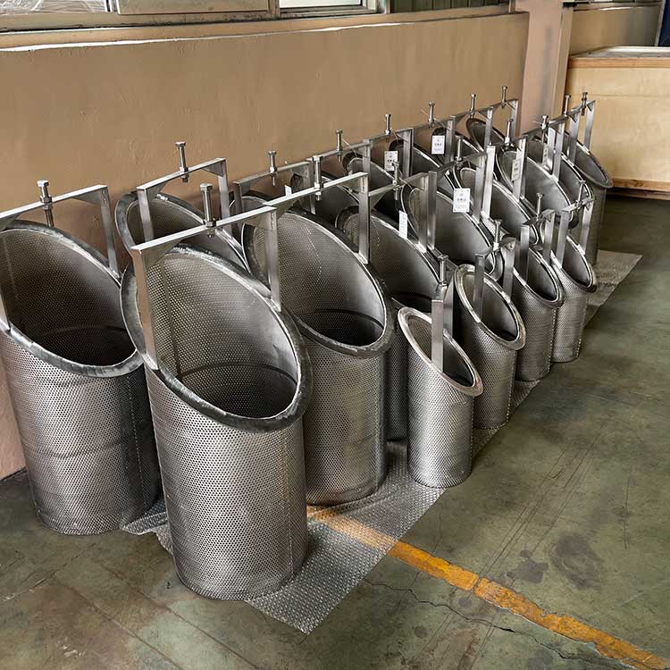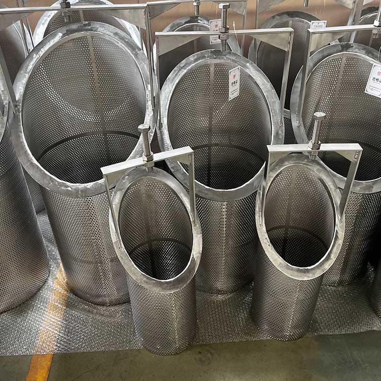 結構:圓柱形 / 錐形帶提手籃體,底部封閉、頂部開口;由濾網層 + 骨架(沖孔板 / 穿孔管)+ 法蘭 / 翻邊 + 提手組成。