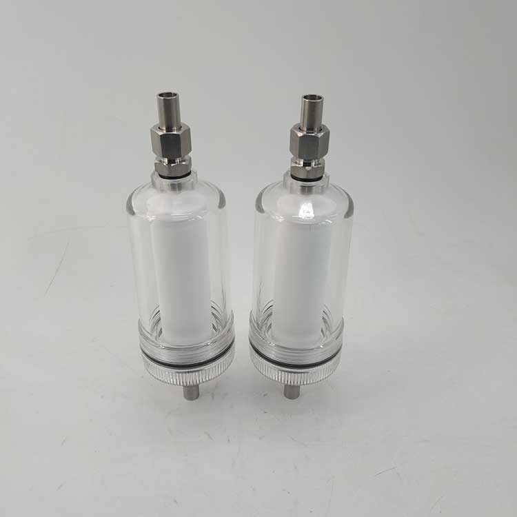 2、低壓過濾器對樣品進行二級過濾。用于對儀表樣水進行過濾,保護儀表電極過濾器采用棉線壓制濾芯,過濾精度高,并帶有止回閥,防止電極失水。外殼采用PC合金,更換濾芯時,只需旋開下端蓋即可。
